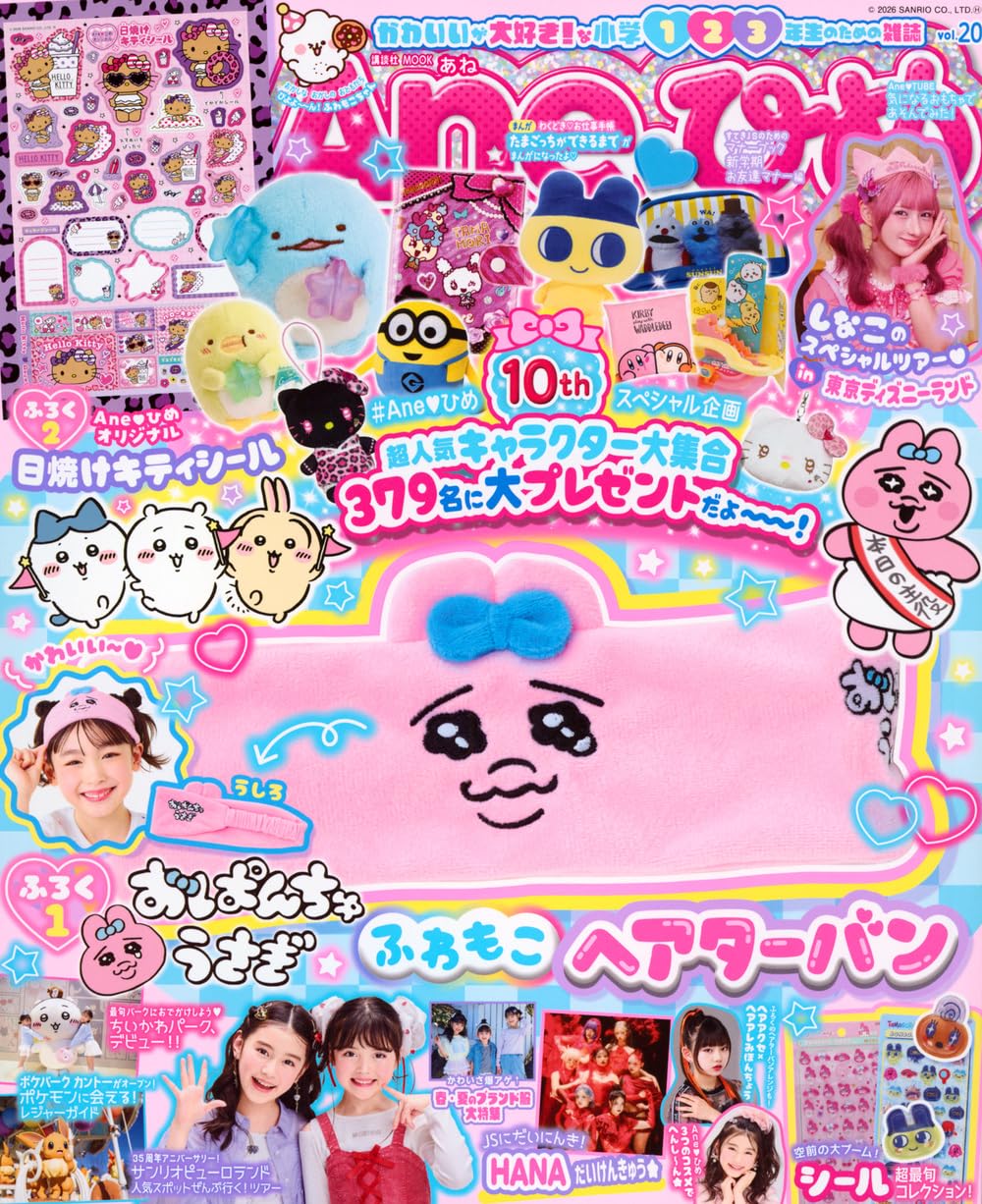 『Aneひめvol.20』は、触りごこち抜群の『おぱんちゅうさぎ ふわもこヘアターバン』と、ピンクと紫のヒョウ柄がかわいい『Aneひめオリジナル 日焼けキティシール』の豪華2大付録! どちらもAneひめだけのオリジナルです!