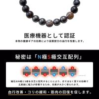 ※天然石なので、色や模様の出方に個体差があります。 ※水や汗、太陽光や電灯等により、劣化や変色、退色が起きることがあります。 ※天然石を使用しているので、色むら、不純物や内包物、天然キズ(クラック)などがある場合があります。 ※他のジュエリー類や硬いものと接触しないようご使用・保管ください。衝撃により破損の可能性がございます。 ※保証の適用範囲は、製造上・設計上の問題に起因する製品本体の不良(キズ、汚れ、機能不良等)が対象であり、且つ弊社にて不良が確認された場合に適用とさせていただきます。なお、確認に日数をいただく場合もございますので予めご了承ください。 ※ペースメーカーなどの電磁障害の影響を受けやすい体内植込み型医用電気機器や脳脊髄液短絡術用圧可変式シャントなどの磁気影響を受ける可能性がある医用電気機器を使用している方は機器の誤作動の恐れがございますので、使用しないでください。 ※心臓に障害があり、ステントを装着されている方は、使用前に医師にご相談ください。 ※補聴器をご使用の方は補聴器にノイズが発生する場合がございますので、ご使用をお控えください。 ※就寝時に使用する際は、電気毛布、コタツ、ホットカーペットなど、長時間磁石が熱を帯びた状態になる器具との併用はお避けください。 ※妊娠初期の不安定期または出産直後の方はご使用前に医師にご相談ください。 ※他社商品を含む磁気ネックレスを2本以上付けての使用は禁止されていますので、お控えください。 ※時計や磁気カードなど磁気の影響を受けるものには、近づけないようご注意ください。 ※お客様都合による開封後の返品・交換はお承りできません。予めご了承くださいませ。 ※写真の色調はご使用のモニターの機種や設定により実際の商品と異なる場合があります。 ※製品の仕様は予告無しに変更となる場合があります。予めご了承ください。 |