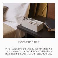 ティッシュ箱の上から被せるだけで、箱が本体に固定されるティッシュケース。 |