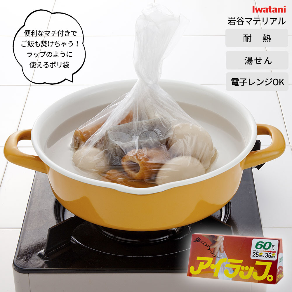 | 注 意 | *加熱時は120℃以上になると、破袋や溶融の危険性があります。 *油性の食品は加熱しないでください。 *アイラップ は、湯せんや電子レンジで「あたためができるポリ袋」として開発されたものであり加熱調理に対する保証はできません。 *湯せん時は鍋肌に袋がふれないように注意し、鍋底に必ず耐熱皿を敷いてください。パッケージに記載している注意書きをよく読んでご使用ください。 *モニターにより、色の見え方が実際の商品と異なる場合がございます。 *当店では、WEBの在庫と店頭の在庫を共有しております。迅速に対応はしておりますが完売してしまった場合ご用意出来ない場合もございます。予めご了承下さい。 | |