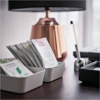 | ほどよいサイズ感が使いやすい! ホテル仕様のメタルトレー。 9cm x 9cm、高さ4cmでちょっとした所に置きやすいサイズ感がとても使いやすい!! 机の上に散らかりがちなアイテムをホテルのアメニティのように整理しませんか? リビング・洗面所・キッチン・書斎・玄関など、ちょっとした場所に置いても違和感のない上品でシンプルな見た目ですっきりと収納することができます。 カラーはブラックとホワイトの2色。お部屋の雰囲気に応じて使い分けもできます。 同シリーズのアイテムで揃えれば、おうちがホテル仕様に生まれ変わるかも?! 裏面にはシリコンクッションが付いているから机など、傷つけにくく安心です。 |
