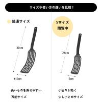 しなやかに曲がりフライパン・鍋などをキズつけず、長い物を乗せやすいロングターナー。フライパンと食材の間に入りやすく、長い物も形を保ったままひっくり返せます。先端が浮くので直置きにならずに清潔。食洗機OK。