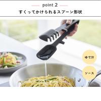 簡単・綺麗・手早く盛り付け! 滑りにくいシリコーン調理トング ・point1 麺を千切らず優しくつかめる ・point2 すくってかけられるスプーン形状