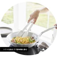 シリコーン製で滑りにくく熱に強い調理トングです。シリコーンコーティングされているのでフライパン・鍋などをキズつけません。グリップが太めで握りやすく麺類も滑りにくくしっかりとつかめます。スプーン形状でサラダのドレッシングやフライパンのソースなどをすくってかけられます。先端が浮くので直置きにならずに清潔。食洗機OK。 |