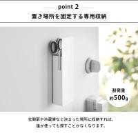 みんなが使いやすい隠すスマートカッター収納 ・point 1 隠してもすぐ使える ・point 2 置き場所を固定する専用収納 ・point 3 引っ掛けできるフックつき
