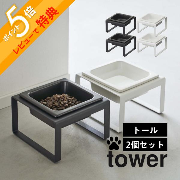 山崎実業 ペットフードボウルスタンド タワー トール 2個セット tower 5816 5817