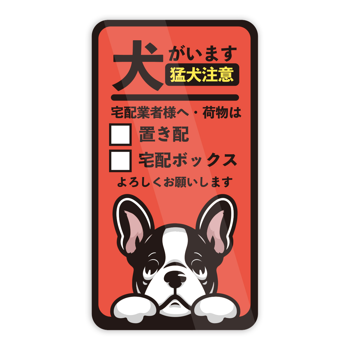 フレンチブルドッグ 犬がいます 猛犬注意 置き配 宅配BOX インターフォンを鳴らさないで ステッカー 防水・耐熱 シール
