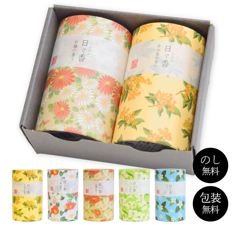 線香 贈答用 ギフト お線香 お供え 日本香堂 ミニ ハーフ 日々香 2個セット 白檀 金木犀 椿 ジャスミン ゆり お悔やみ 喪中見舞い 新盆見舞い 初盆 お盆