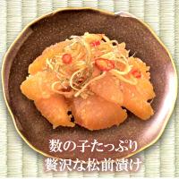 真昆布とスルメを使用し、数の子をふんだんに加えた贅沢な松前漬です。