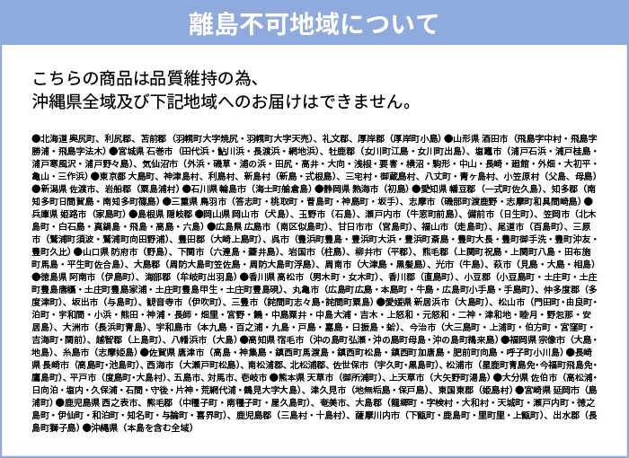 ・配達日ご不在によりお受け取りが遅れた場合の商品劣化や破損に対する返品・交換は出来かねます。