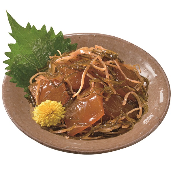 スルメと昆布を使用した北海道・道南地方の伝統食「松前漬」。この松前漬けにプチプチ食感の数の子を加えました。数の子は希少な部類である北海道産を使用。しっかりとした歯ごたえを楽しめます。旨みたっぷりのスルメと味わい深い真昆布と相まって、豊かな味をお楽しみいただけます。