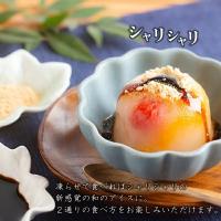 りんご、みかん、さくらんぼが入ったあんみつです。冷蔵庫で冷やせばぷるんぷるんの食感に、凍らせるとシャーベットのようなシャリシャリの食感に。二つの食べ方を楽しめます。きな粉と黒蜜をかけてお召し上がりください。