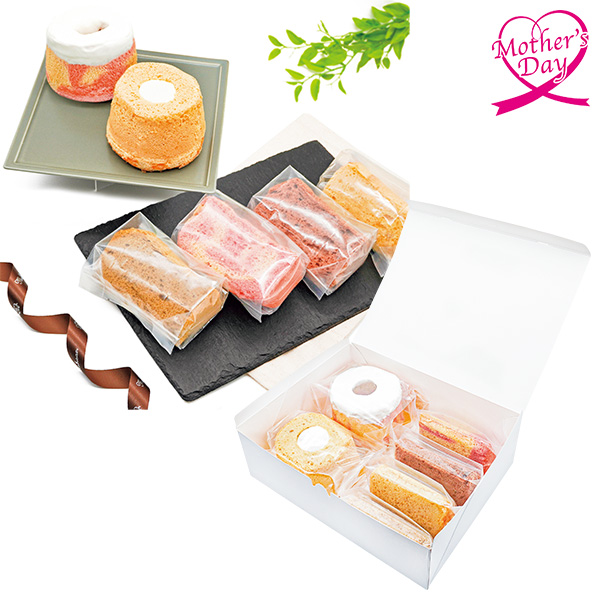 見た目も可愛い、こだわり素材のふわもち新食感シフォンケーキのセットです。