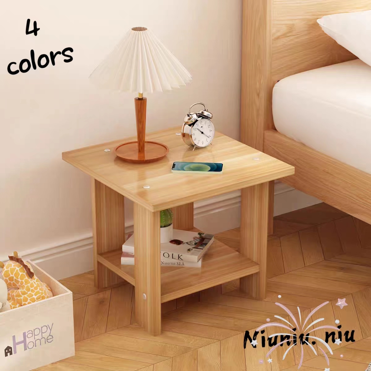 正方形 サイドテーブル ナイトテーブル ローテーブル 座卓 ちゃぶ台 軽量 木製 テーブル 小型 組立簡単 在宅 食事テーブル 一人暮らし 2層