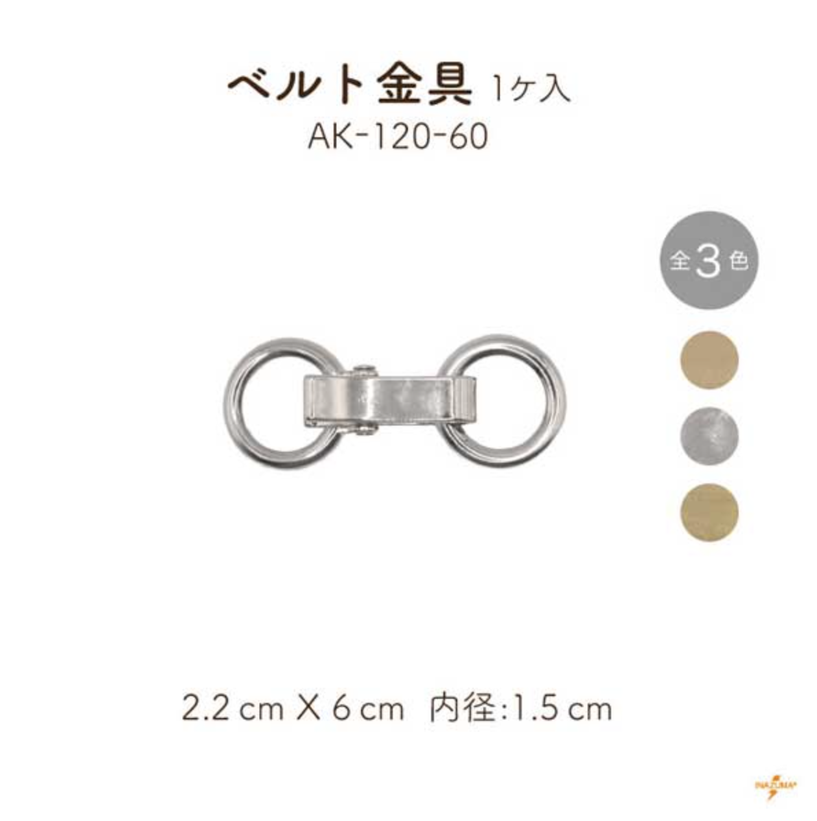 ベルト金具 丸型 内径15mm用 留め具 修理 補修 装飾 交換 バッグ コート ベルト 手芸 ハンドメイド AK-120-60 INAZUMA