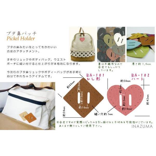 ブタ鼻パッチ 合皮 レザーパッチ ひし形 ピッケル リュック 交換 補修 修理 アウトドア 手縫い 手芸 BA-101 INAZUMA イナズマ BA101 PVC