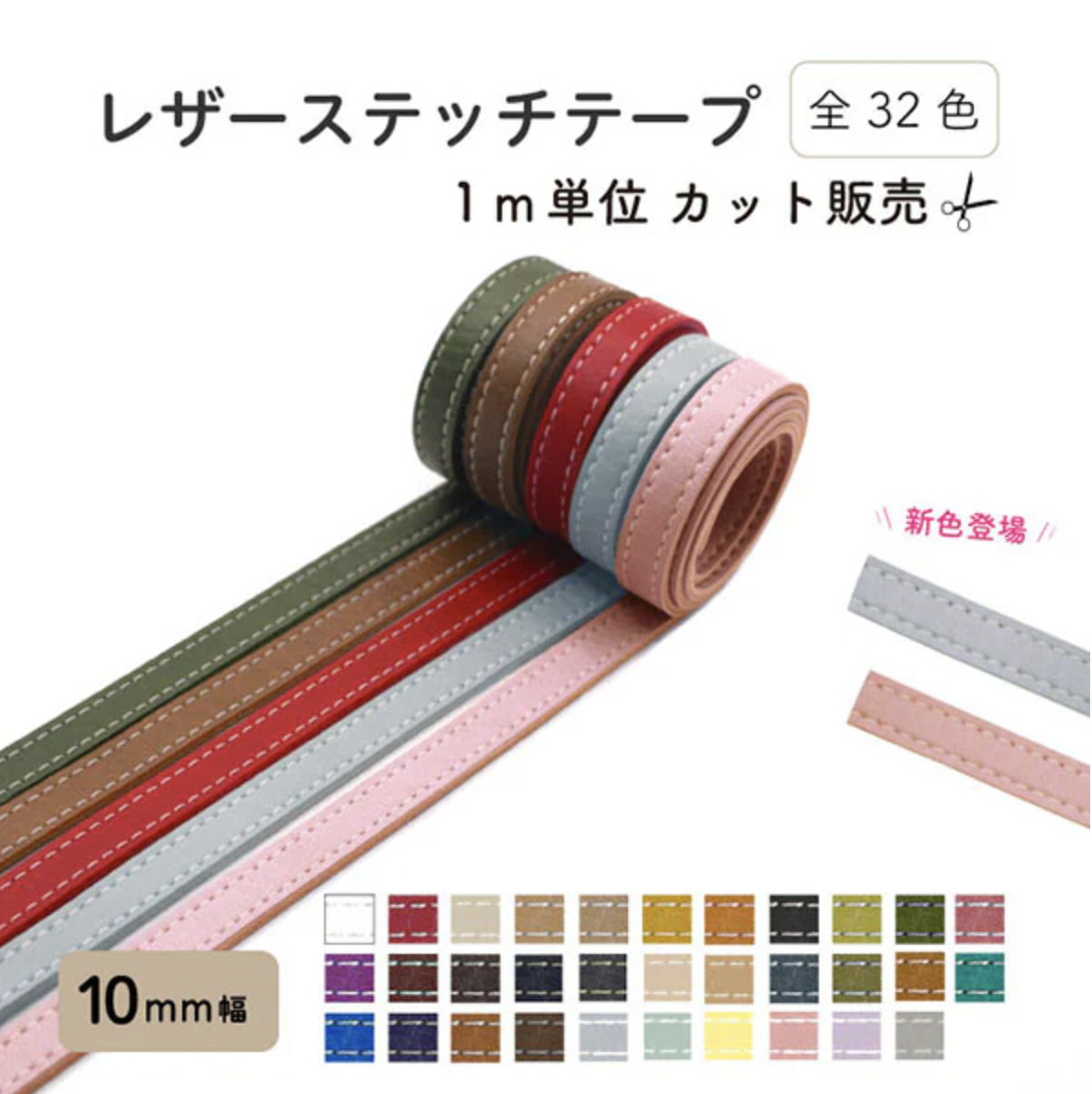 1m単位 合皮 テープ レザーステッチテープ 10mm幅 全32色 BT-0187 INAZUMA