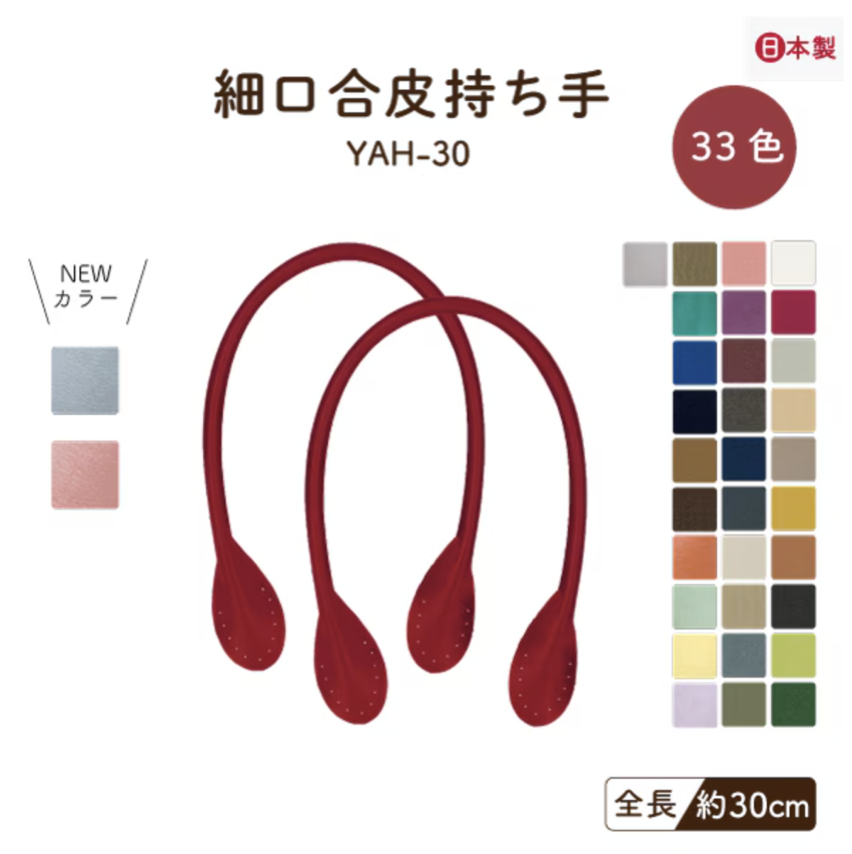 合皮 持ち手 かばん取っ手 型紙付 30cm 全33色 日本製 YAH-30 INAZUMA