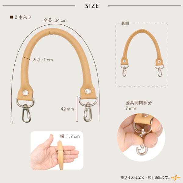 持ち手 合皮 修理 交換 補修 付け替え ナスカン式 34cm YAK-3405S 手芸 ハンドメイド INAZUMA イナズマ YAK3405 日本製