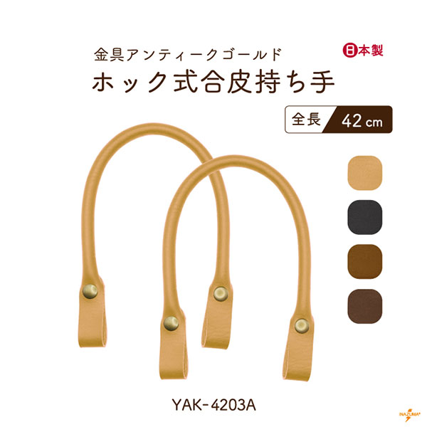 持ち手 合皮 ホック式 簡単 手芸 ハンドメイド 編み物バッグ 修理 交換 補修 約42cm YAK-4203A INAZUMA イナズマ YAK4203A 日本製