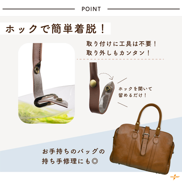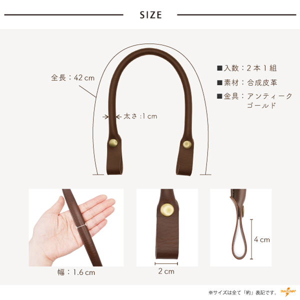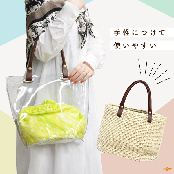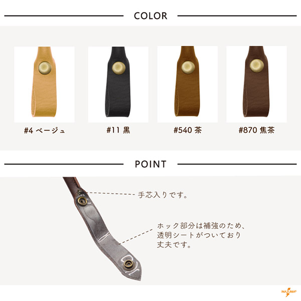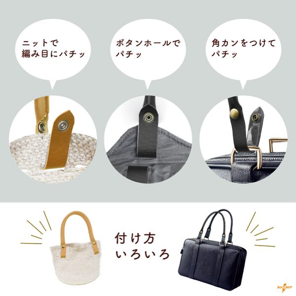 持ち手 合皮 ホック 簡単 手芸 ハンドメイド 編み物バッグ 修理 交換 補修 スナップボタン 42cm 日本 レザー YAK-4203A INAZUMA