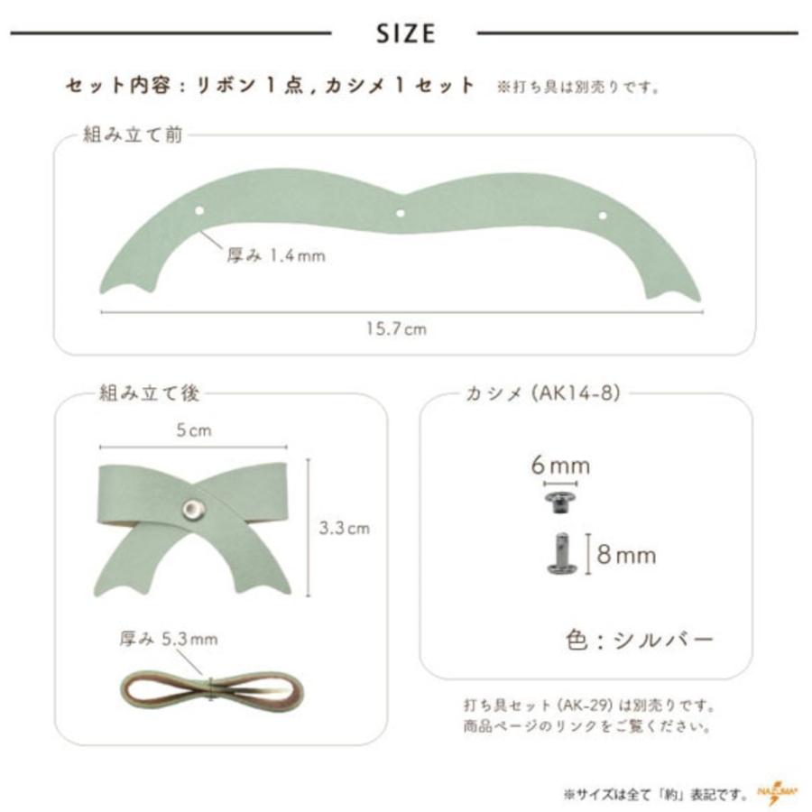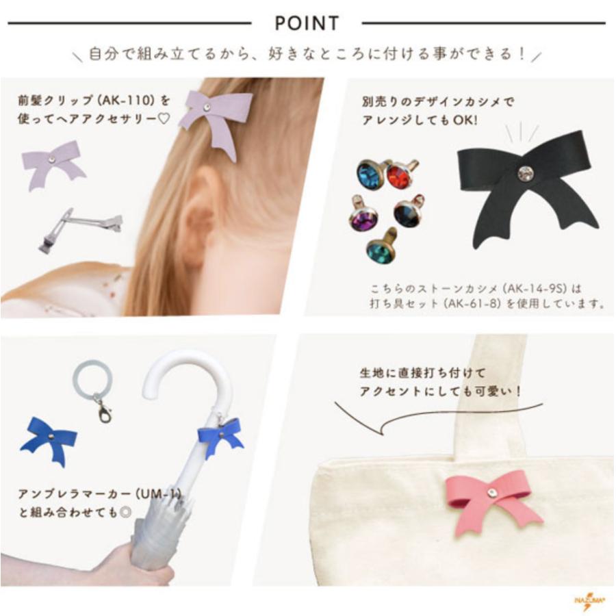 入数 リボンモチーフ1色1枚・カシメ1セット(打ち具セット(AK-29)は別売りです。)