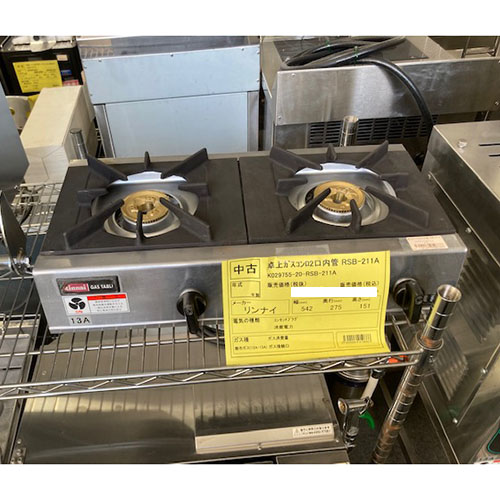 卓上ガスコンロ 2口内管 リンナイ(Rinnai) RSB-211A 都市ガス 業務用 中古/送料別途見積