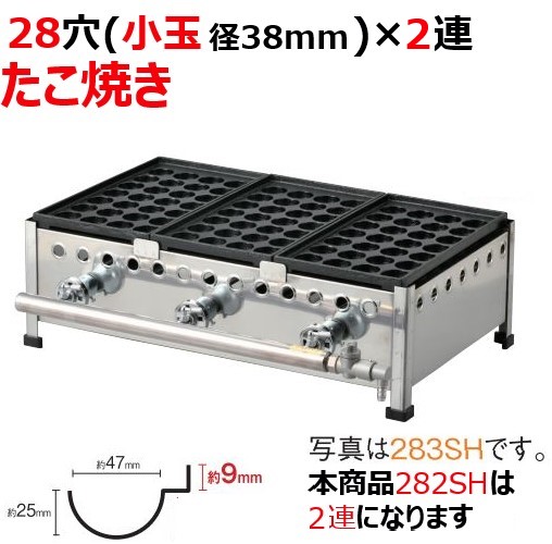 業務用/新品 たこ焼き器 28穴/鉄鋳物 2連 282SH 幅405×奥行358×高さ190(mm) 送料別途見積/保証なし