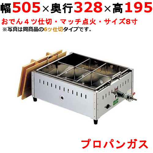 0885510 【EBM】ガス式おでん鍋 マッチ点火式 関東煮 8寸 4ツ仕切 LPガス(プロパンガス) 幅505×奥行328×高さ195(mm) 【業務用/新品】【送料無料】