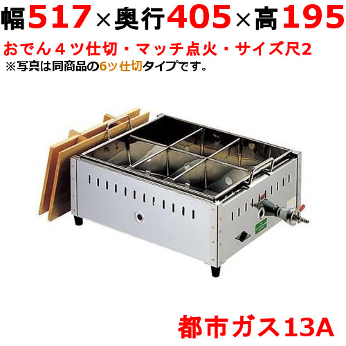0885620 【EBM】ガス式おでん鍋 マッチ点火式 関東煮 尺2 4ツ仕切 都市ガス(13A)幅517×奥行405×高さ195(mm) 【業務用/新品】【送料無料】