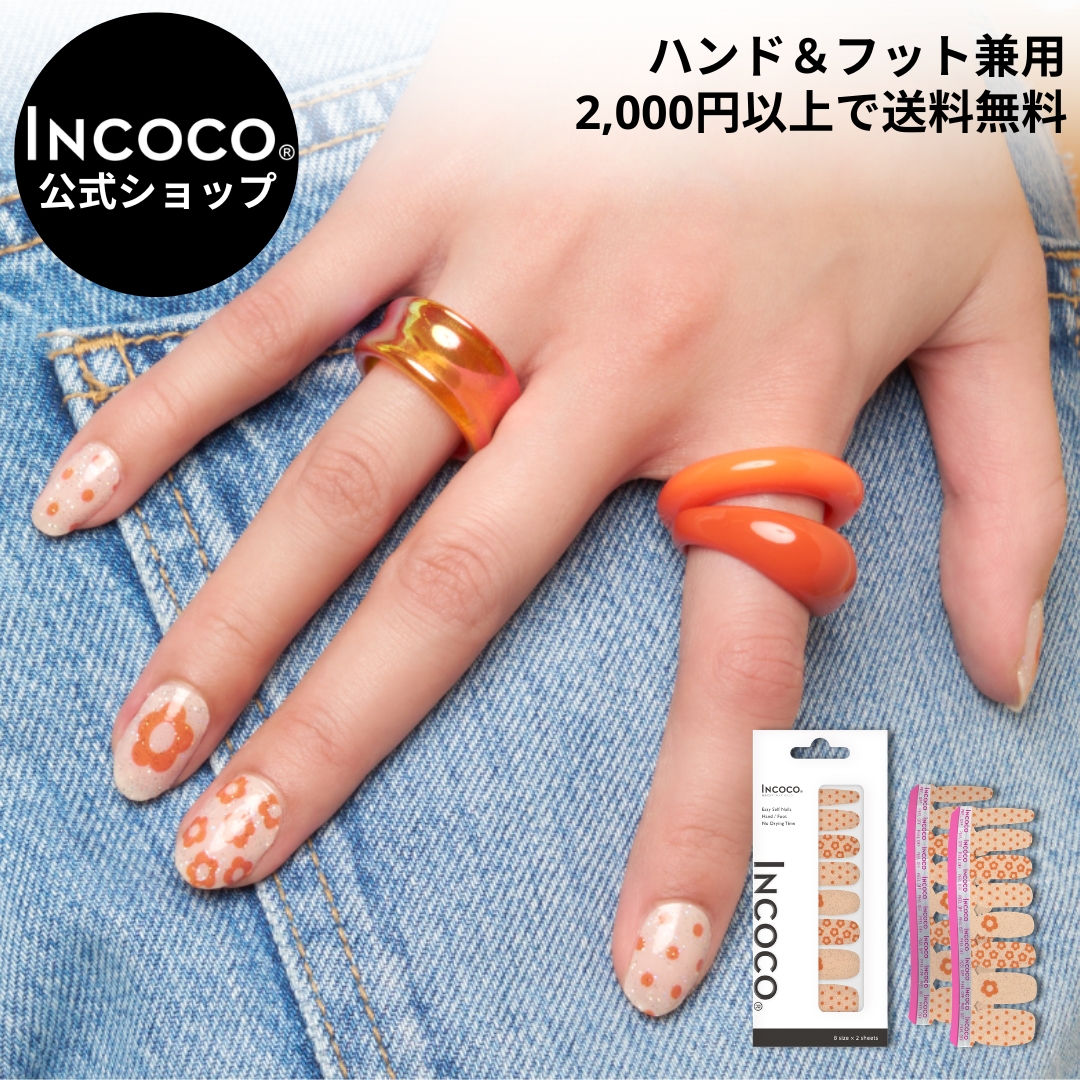 ネイルシール 花 貼るだけ ジェル風 インココ マニキュア ベージュ オレンジ INCOCO シール 貼る ネイル ペディキュア セルフ 簡単 足