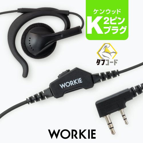 ワーキー 耳かけ付スピーカーストレートイヤホンマイク ライト [ケンウッド用2ピンプラグ・K] / 特定小電力トランシーバー 無線機 インカム イヤホン