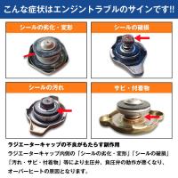 | ボンネットを開ければ一目で水温がわかり、異常に気づける超便利な水温計付きのラジエターキャップ! ラジエーターキャップは単なる蓋ではなく、冷却装置内の圧力を適正に保つ重要な部品です。 ラジエーターキャップ内側にあるシールが劣化・変形・破損等すると弁の動作が悪くなり、オーバーヒートの原因となります。 走行条件によって異なりますが、車検の時または5〜7年ごとの交換がおススメです。 ラジエーターキャップは「ひねって回すだけ!」で開けることができますが、火傷の危険もあります。 水温を確認しながらエンジン調整ができる為、安全にキャップを外すことができ、事故防止や作業の効率化を図ることが出来ます。 また、ホワイトメーターの文字盤が見やすく、温度の確認がスムーズに行えます。 圧力別に0.9k、1.1k、1.3kと3種類取り扱っておりますので、お車の状態や年式によりお選び下さい。 詳細は各商品ページにてご確認ください。 ※車両により適用が異なる場合がございます。 年式・車両型式・エンジン型式及び純正ラジエターキャップの形状と開弁圧力を必ずご確認ください。 ※メーターの数値は目安となります。 ※車や走行距離の長い車は圧力高めのキャップにしますとエンジンに不具合が生じてしまう場合がございます。 |