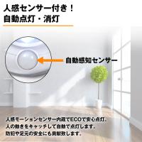 | 【電源不要!スマート人感センサー】 人感センサーを内蔵しており、人が通ると自動点灯します。 近くにいる間は点灯したままで、離れると少し経って自動消灯します。 電源・配線不要の乾電池式。 ※ライトの向き等によっては点灯するまでに時間がかかることがあります。 【自由に角度調整可能】 ライトのベース部分が円形になっており、360℃回転仕様。 設置後でも光の角度を自由に調整することができます。 |
