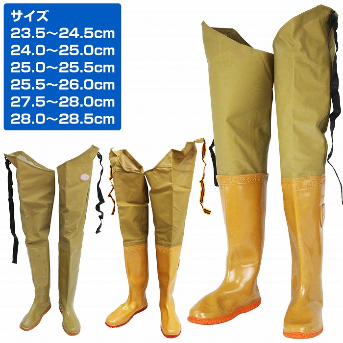 | 股下までのヒップウェーダー! ●靴底はゴム製で滑りにくい仕様です。 ●片足ずつ独立した作りになっており、太もも辺りまでをカバーできます。 ●ズボンのベルト通しにウェーダーに付属の吊り下げベルトを通すだけ! ●チェストタイプに比べて、履きやすく脱ぎやすい◎ 様々なシーンで大活躍♪ ●釣り、レジャー、漁業、水産業、農作業、除雪作業などに便利! ●高い防水性、撥水性 ●水温で奪われる体温の低下スピードを遅くします。 ゴム底タイプのラジアルソール ●様々な形状の溝が複数刻まれているので、高いグリップ力で滑りにくい! ●サーフや砂浜でフィッシングを行う際におすすめです。 |