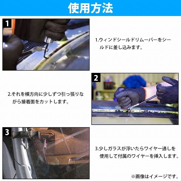 | ■セット内容 ・ウインドシールドリムーバー×1 ・ワイヤーハンドル×2 ・ステンレスワイヤー×1 ・ワイヤー通し×1 ・シールド・モール外し×1 ・内張剥がし×1 ■重量:980g ■サイズ詳細は画像をご確認ください。 ※取扱説明書等は付属しておりません。 ※刃の切れが悪い場合は研いでご使用ください。 ※当商品は海外製品のため、多少の傷、汚れなどがある場合がございます。 ご使用に問題はございませんので、ご了承の上、お買い求め下さい。 |