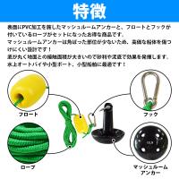 水上オートバイ/ジェットスキー/小型ボート/小型船舶に最適! マッシュルームアンカーとアンカーロープのお得なセットです♪ マッシュルームアンカーは底が丸いため地面などとの接触面積が大きく、砂利や泥底に適しています♪ 角ばった部位が少ない丸みのある形なので、船体に傷をつけにくい設計です! インフレータブルボートでもボートを破いたりする心配が少なく安心です。 表面には強度と耐力の高いPVC(ポリ塩化ビニル)を加工してあります。 PVCは経年劣化しにくく、耐水性に優れており、アンカーに適した素材です。 アンカーロープは軽量&コンパクト! 船での置き場所にも困りません。 シーアンカーの回収用ロープとしてもご利用いただけます。 フロートがアンカーの位置を示してくれるので、回収が簡単になります。 |