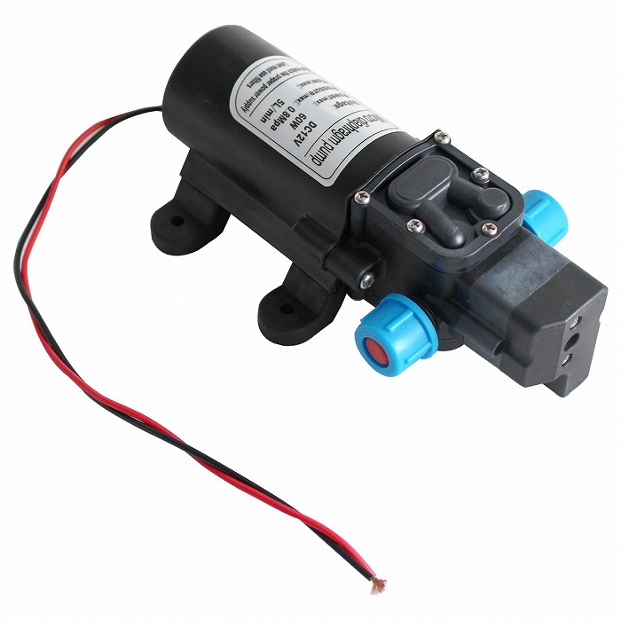 | 汎用 12V 小型 電動 ウォーター ポンプ ダイヤフラム ・お庭の散水、愛車の洗車、アウトドアなどいろいろな用途に使用できます。 ・配線は、黒色は − 赤色は + です。 |