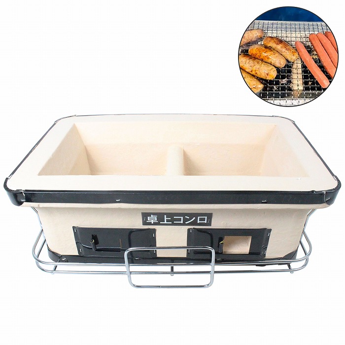 | 小さいながらも本格的な作り! お酒と一緒にちょっとしたつまみを手軽に焼ける七輪♪ 焼き魚や魚介類・焼き鳥・焼肉など炭火焼料理が手軽に楽しめます! アウトドアはもちろん、ちょっと贅沢なおうち時間のお供に! スチール台付きなので卓上でも使え、移動もラクラク。 小窓の開け閉めで火力調整可能! 炭入部がが2つに分かれているので、火力を分けることも可能です。 また、熱効率が非常に高く、炭が長持ちして経済的です。 ※火消壺等をご用意の上、換気や安全に配慮してご使用ください。 |