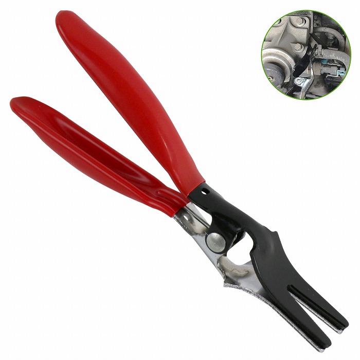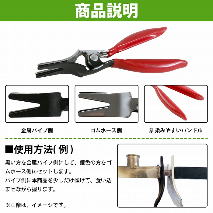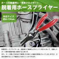 | 固着したホース類の脱着作業に使用するホースプライヤー! エンジン回りのホースを無理に引き抜くと 亀裂の原因になる場合がありますが、 専用工具を使用することでスムーズに作業が行えます。 対応サイズは4-13mm! ある程度、ホース周りに余裕のある箇所でのご使用をおススメします。 【使用方法】 黒い方を金属パイプ側に、銀色の方をゴムホース側にセットします。 パイプ側に本商品を少しだけ傾けて、食い込ませながら握ります。 |