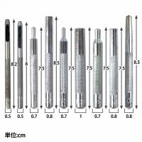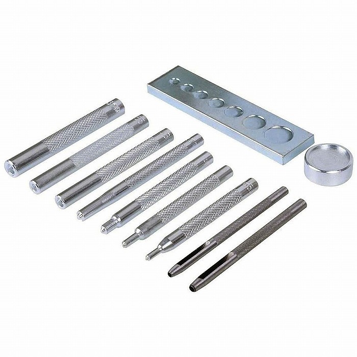 | <セット内容> No.201 ×1本 No.831 ×2本 No.633 ×2本 No.655 ×2本 万能打ち台 ×1 打ち台 ×1 ハトメ抜きポンチ ×2 (3mm,2.5mm) ■海外製となりますので、日本製・ブランド品と同等の品質をお求めになる方や神経質な方はご遠慮下さい。 |