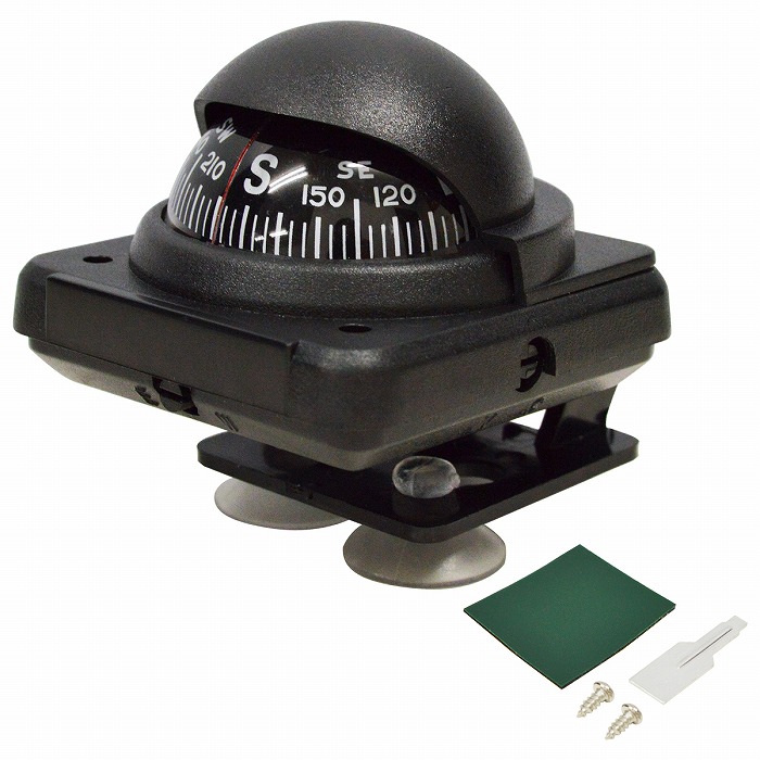 | 船舶用の逆進タイプのマリンコンパスです。 【角度調節可能】 ブラケットマウントは180度可動式です!! 見やすい角度で固定してお使いいただけます。 また、コンパクトな小型コンパスなので場所を選ばす設置できます。 【オイル式コンパス】 オイル式なので針の振れが少なく、正確な方向を指し示します。 文字盤の目盛は立体的で見やすいコニカルダイヤルを採用しています。 手動で方角の偏差を調節することも可能です。 【多彩な取付方法】 船体の机面・壁面いずれも固定することができます。 台座には吸盤2個付き! 他にも取り付け用の両面テープ&付属ネジ2本が付いており、設置場所に応じて取付方法をお選びいただけます。 【フード】 直射日光からコンパスを守るフード付きです! 劣化防止になり長くお使いいただけます。 |