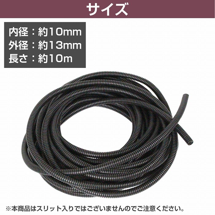 | セット内容:コルゲートチューブ ×1本 内径:約10mm 外径:約13mm 長さ:約10m ※本商品はスリット入りではございませんのでご注意ください。 ▼他サイズはこちら↓▼ 《 内径5mm 》《 内径7mm 》《 内径10mm 》 |