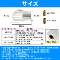| ◆カラー全2色:ブラック/ホワイト ◆本体長さ:縦65mm×横47mm ◆本体ネジ山:M12×P1.25 付属アダプター2種:M10/M8×P1.25 ◆参考適合車種 [M8×P1.25] 日野2t エアループデュトロ AT車 トヨタ1t NEWダイナ プロシフトAT車 など [M10×P1.25] いすゞ2t 07エルフ MT車 ふそう4t NEWファイターINOMAT AT車 マツダ2t タイタンMT車 など [M12×P1.25] トヨタ 2t ダイナ MT車 日野 2t デュトロ MT車 など ※記載の適合車種は一例です。ご注文前に必ず現車のシフトサイズをご確認ください。 ※ボタン式シフトノブは使用できません。 ※運転時に周囲に干渉しないかサイズをご確認の上、お買い求めください。 ▼他はこちら▼ 《 丸型 6.5cm 》 《 棒型 15cm 》 《 棒型 25cm 》 ▼シフトノブ用LEDはこちら▼ 《 ブルー 》 《 グリーン 》 《 レインボー 》 《 ピンク 》 《 ホワイト 》 |