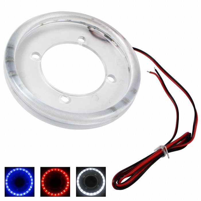 | 【商品仕様】 ・電圧:DC12/24V ・サイズ:直径10.4cm ・配線長:64cm ※詳しいサイズは画像にてご確認ください。 ・LED灯数:24個 ・LEDカラー全3色:ブルー/レッド/ホワイト ▼注意事項▼ ※取り付け前に必ず点灯テストを行って下さい。 加工および一度装着した商品の返品交換には対応できません。 ※本品は防水仕様ではございません。 取り付けの際は水漏れ防止の為、防水処理を行ってから取り付けをお願い致します。 ※取付け方法をご理解されている方が作業を行って頂くか、または専門の業者にお任せください。 |