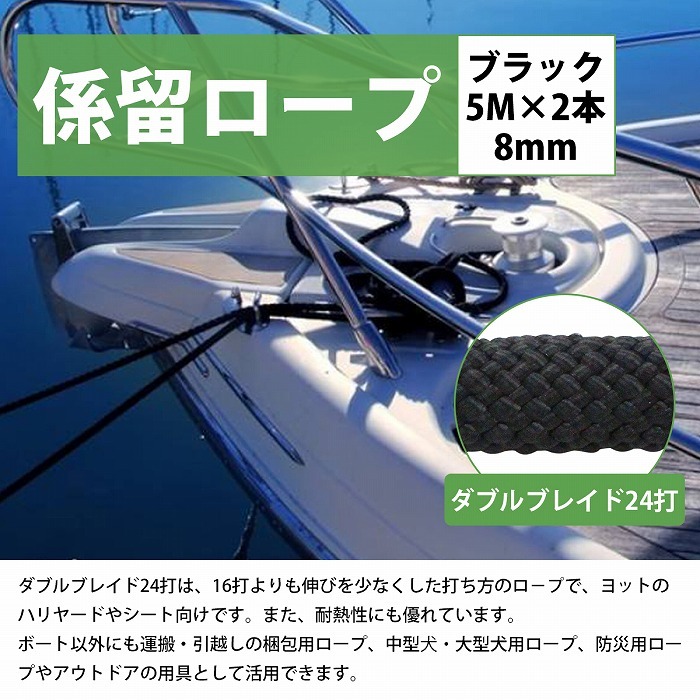 | 【摩擦ショックに強い】 24打ちでしっかりと綺麗に編み込まれており、丈夫で摩擦や衝撃に強い構造です。 柔軟&伸縮性も兼ね備えているため、ロープワークがとても楽になります。 【多様な用途】 ボートをはじめ、マリンレジャーや漁業用には欠かせないロープです。 ほかにも荷役・作業用・防災ロープなどとしても活躍が期待できます。 ※こちらの商品はアイ加工無しです。 |