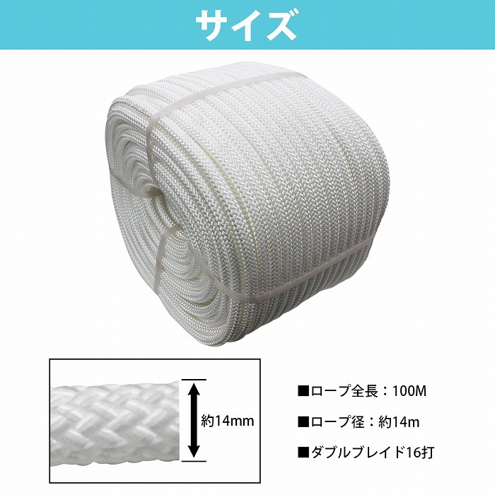 | ◆太さ:14mm(14ミリ)/16打 ◆長さ:100m/1巻 ◆カラー:ホワイト ▼16打ち/太さ違いはこちら▼ 【太さ 8mm】 《 1m単位 切売 》 《 5m×2本set 》 《 10m×2本set 》 《 100m/1巻 》 【太さ 10mm】 《 1m単位 切売 》 《 5m×2本set 》 《 10m×2本set 》 《 100m/1巻 》 【太さ 12mm】 《 1m単位 切売 》 《 5m×2本set 》 《 10m×2本set 》 《 100m/1巻 》 【太さ 14mm】 《 1m単位 切売 》 《 5m×2本set 》 《 10m×2本set 》 《 100m/1巻 》 |