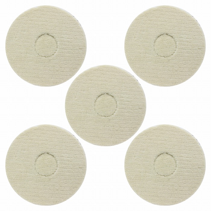 | ●毛足が太い【粗目タイプ】 粗目バフは適度な硬度と弾力で無理な力をかけることなく適度な研磨力を発揮します。 初期研磨や中間研磨、また仕上がりを重視しない淡色車の一発仕上げ等に適しています。 肌落とし・肌調整・ペーパー目消し・淡彩等でご使用頂けます。 ●取り付け・取り外し簡単 面ファスナー仕様なので、ポリッシャーや電動ドリル等に簡単に取り付けることができます。 また、取り外しができるため使用後は丸洗いも可能です。 ●中心部分の取り外し可能 中心の穴の部分も付属してくるので、取り外してφ50mmタイプのウールバフとしても使用可能です。 (450P-L等に使用できます) |