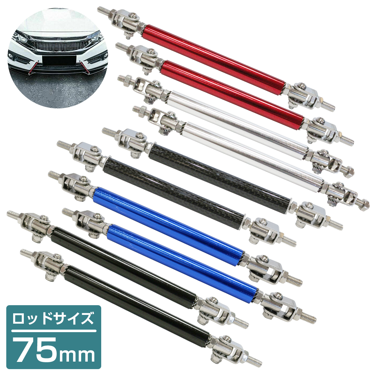 | 汎用のコネクションロッド75mm(ロッド部の長さ)の2本セットです。 走行時のガタツキやすくなるGTウィング ディフューザー エアロパーツなどの固定に必需品! ◆取り付け部は可動式になっているので、取り付け角度も自由に調整できます。 ◆ロッド両端のネジにて長さの調整が可能です。 ◆素材はステンレス&アルミ合金製のため、サビにくく、耐熱性、耐久性に優れています。 |