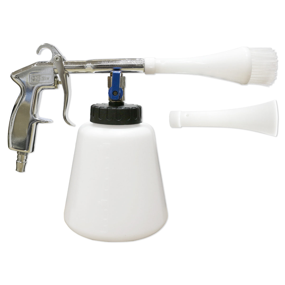 | ■エアー&ミストで強力洗浄 回転ノズルを高速回転! 微粒子噴霧で落ちにくい布類の汚れもラクラク! パルスエアーの力で効果的に叩きながら、ブラシで汚れを取り除きます。 洗車やシート類の汚れ落とし、マットやソファーの洗浄、 機械パーツ類の洗浄など様々な用途に使用できます。 ■洗浄から吹き飛ばしまでコレ1台でOK! 調節弁で、洗浄ミストとエアーの切り替えができるので、 汚れの洗浄から水気の吹き飛ばしまで行うことができます。 切り替えは簡単!調節弁を上に向けると洗浄ミスト、 調節弁を横に向けた場合は、エアーに切り替わります。 【用途(例)】 ★エンジンルームなどの清掃 ★車の内装(シート、フロアマット、ダッシュボード等)のクリーニング ★ウールバフ・スポンジバフのクリーニング ★鈑金塗装時の水切り、エアーブロー、等、さまざまな箇所のエアーブローに使えます。 |
